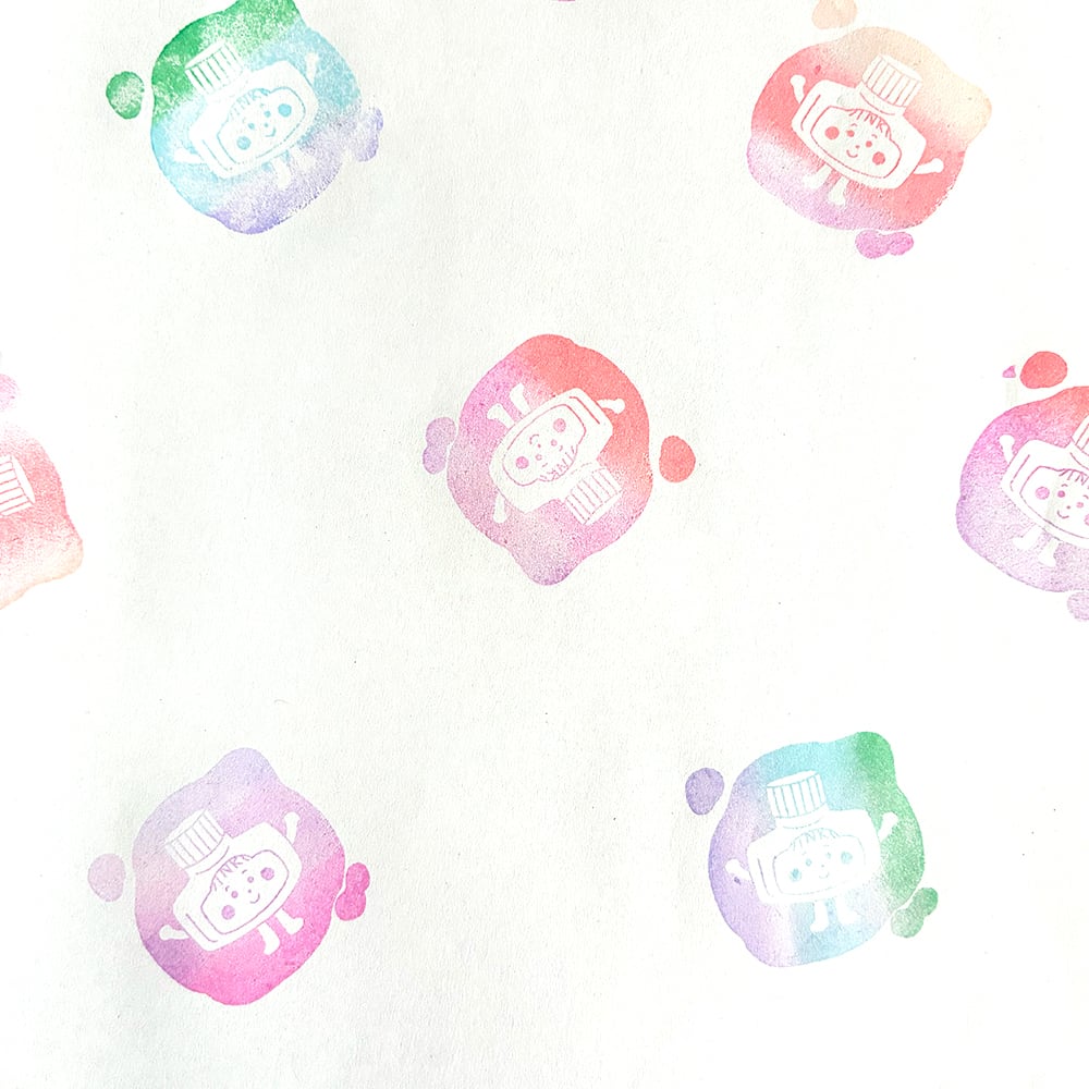 グラデーションのスタンプ台や、いろんな色を付けて押すと